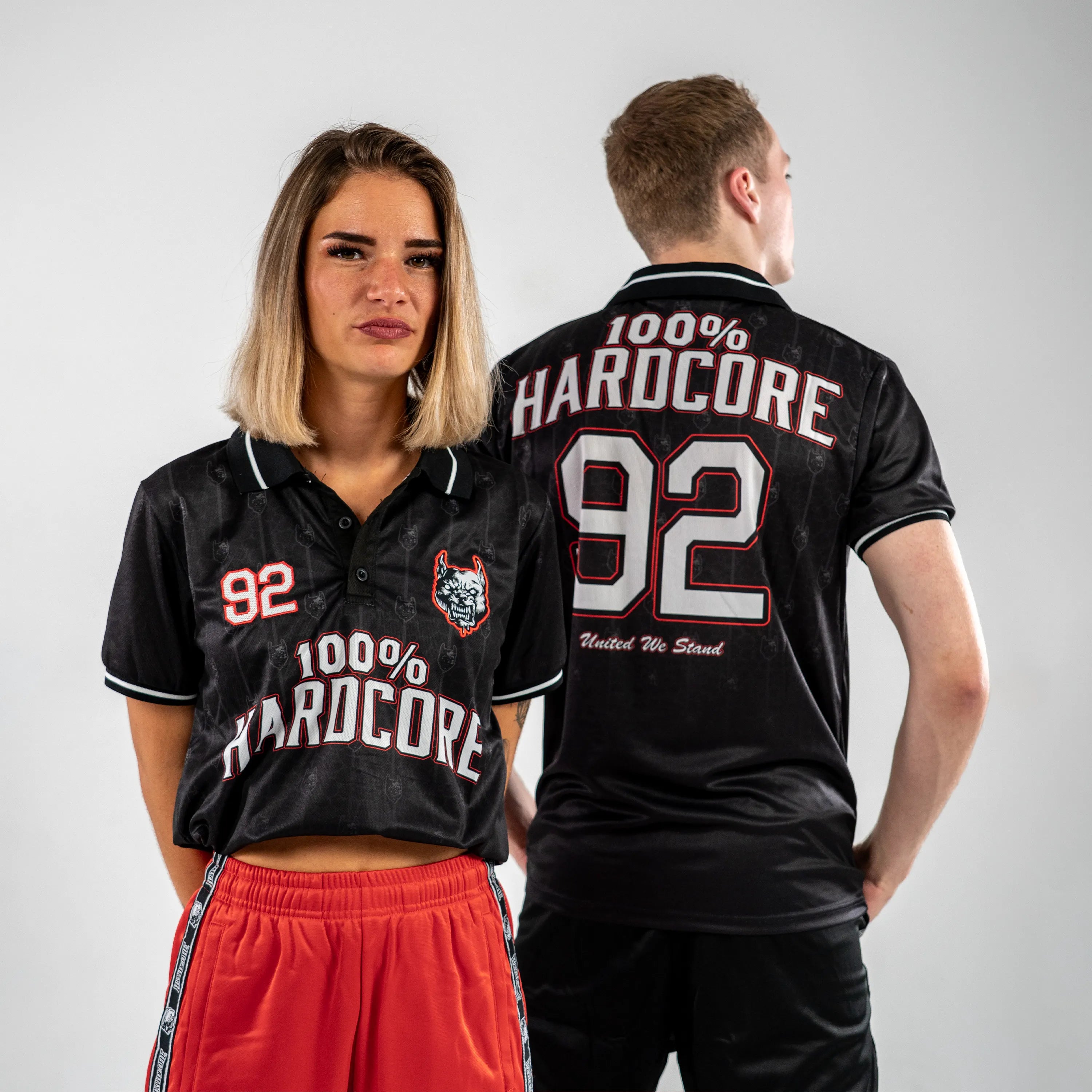 The 100% Hardcore Soccer Shirt “92” pays tribute to the year the movement was founded. Designed in classic black with bold details, it features the iconic “92” on the back and signature 100% Hardcore branding on the chest. A true statement piece for every hardcore fan.