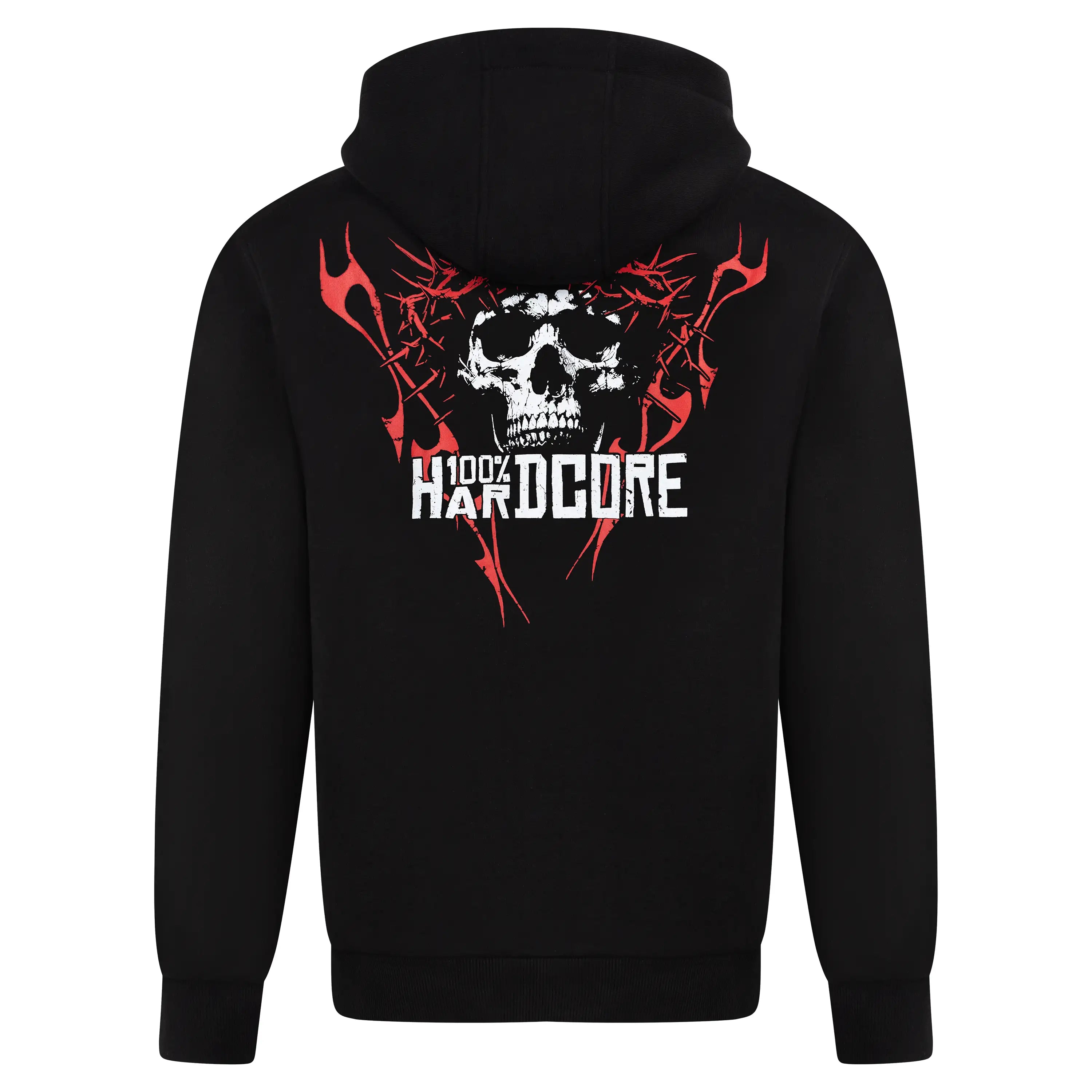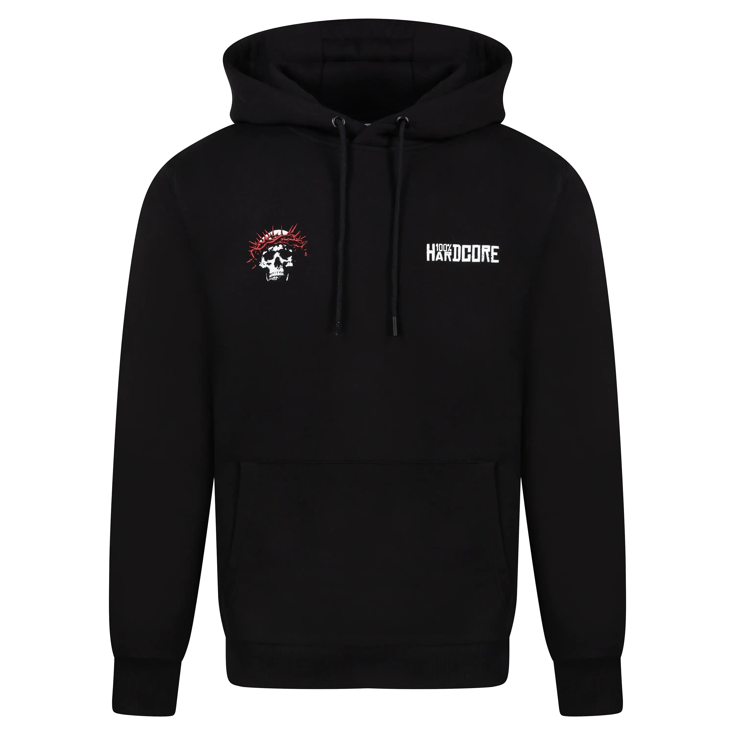 The 100% Hardcore Hoodie Blood Crown is made for the true believers of the hardcore scene. Crafted from 100% premium cotton, it delivers solid comfort with a bold attitude. The powerful red-and-black design with the crowned skull on the back and the embroidered logo on the chest make it unmistakably 100% Hardcore.