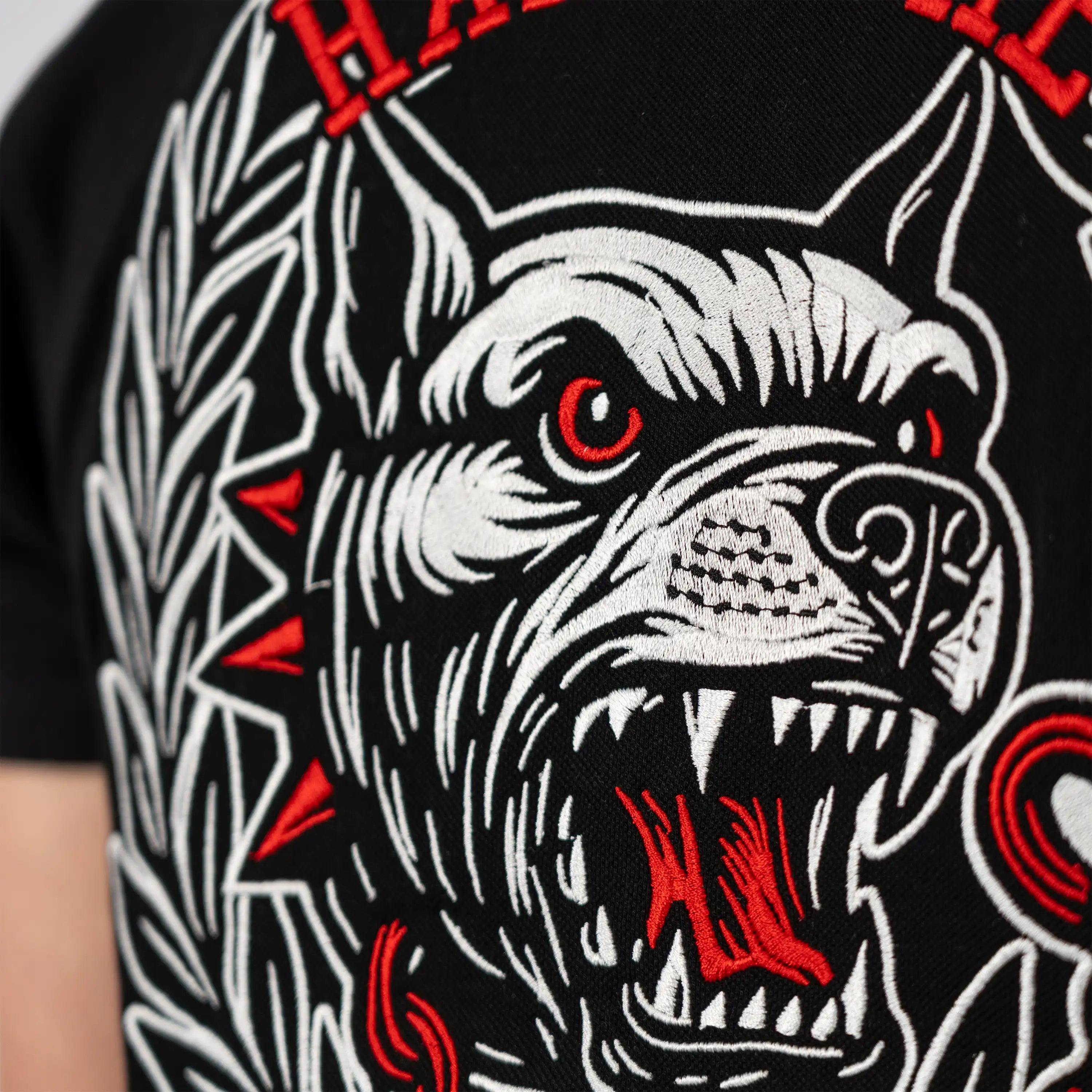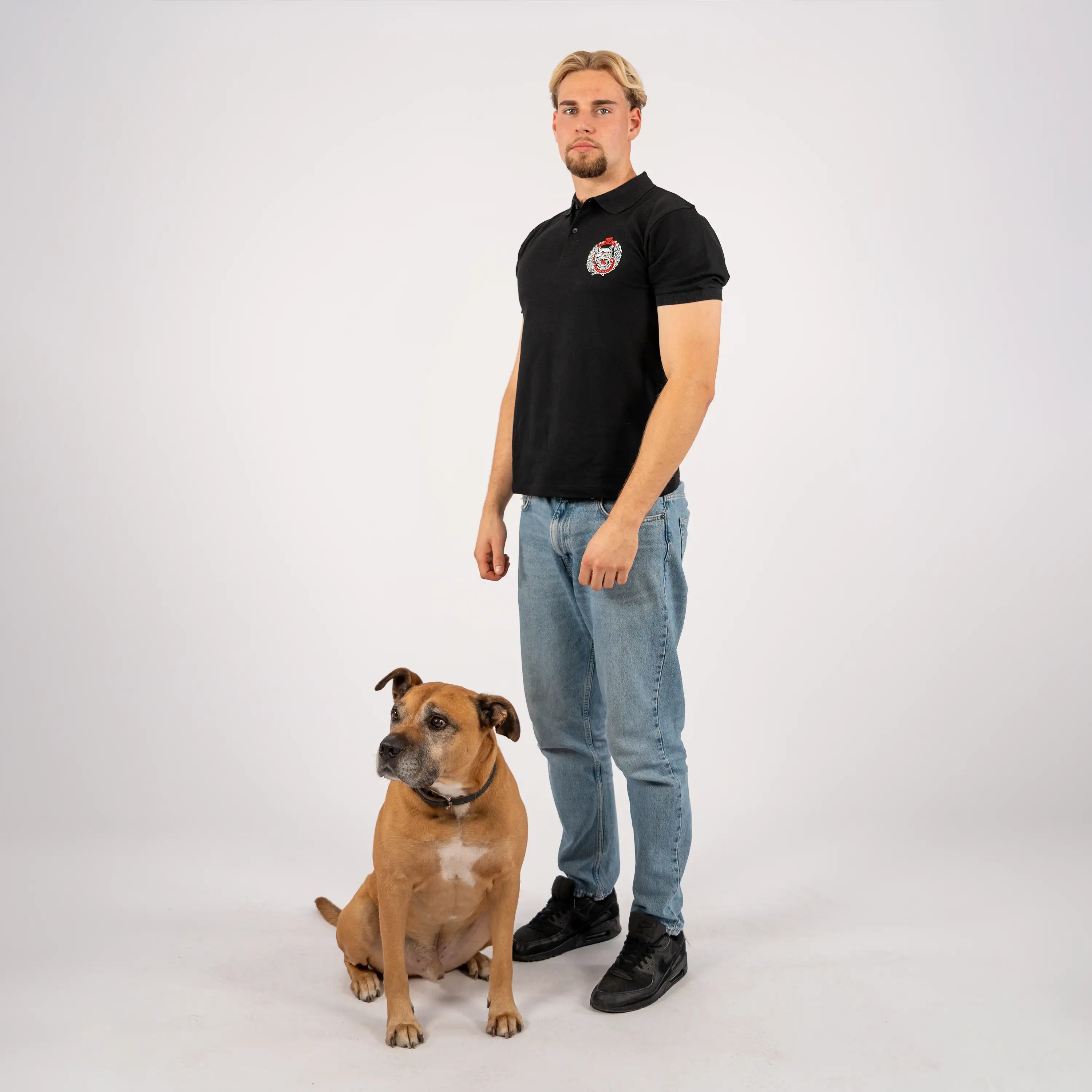 This polo shirt features a bold embroidered logo on the chest, detailed woven patch on the sleeve, and the iconic full Unleashed dog embroidery on the back. A clean but powerful way to represent the hardcore scene.