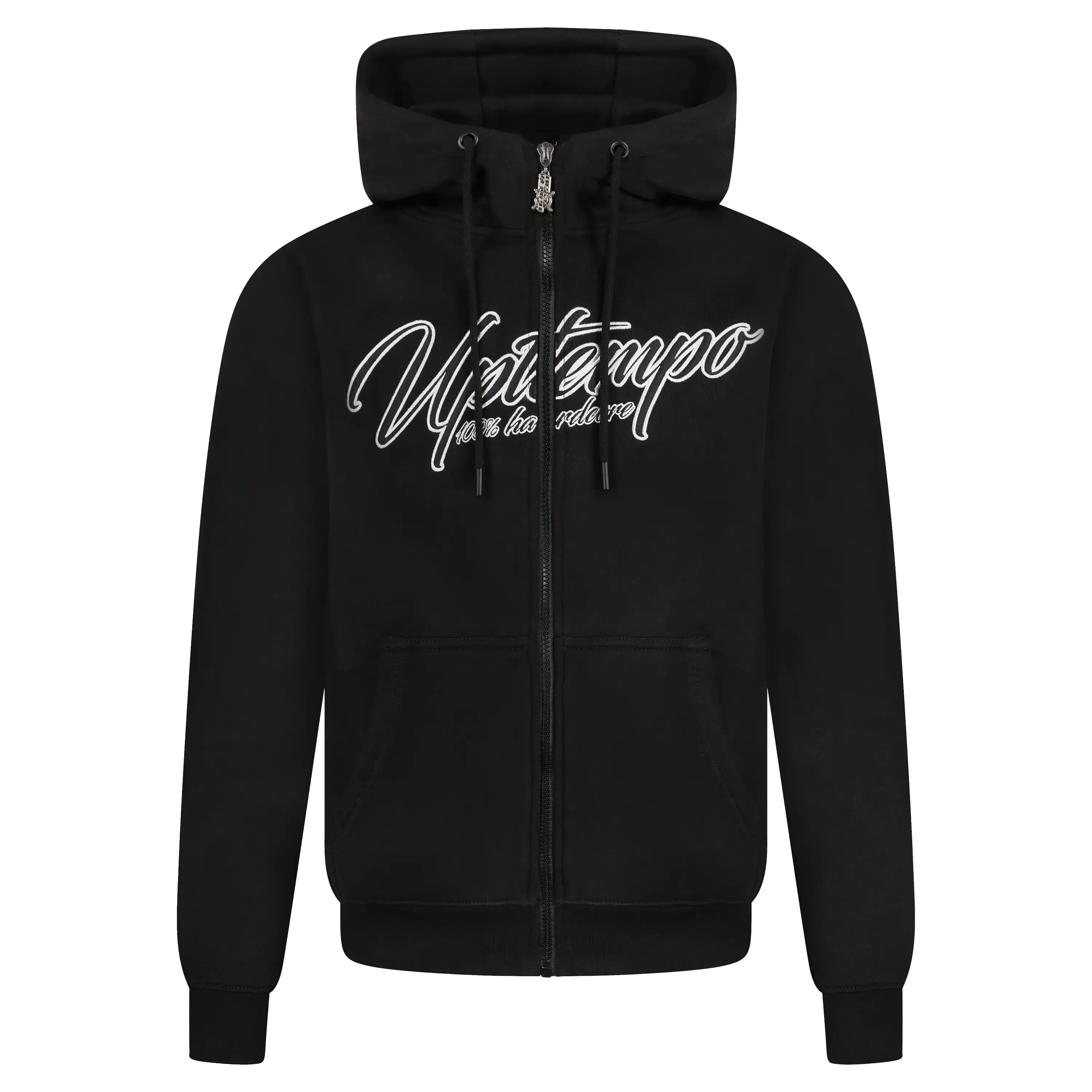 Details: Applique embroidery, full zipper, kangaroo pockets