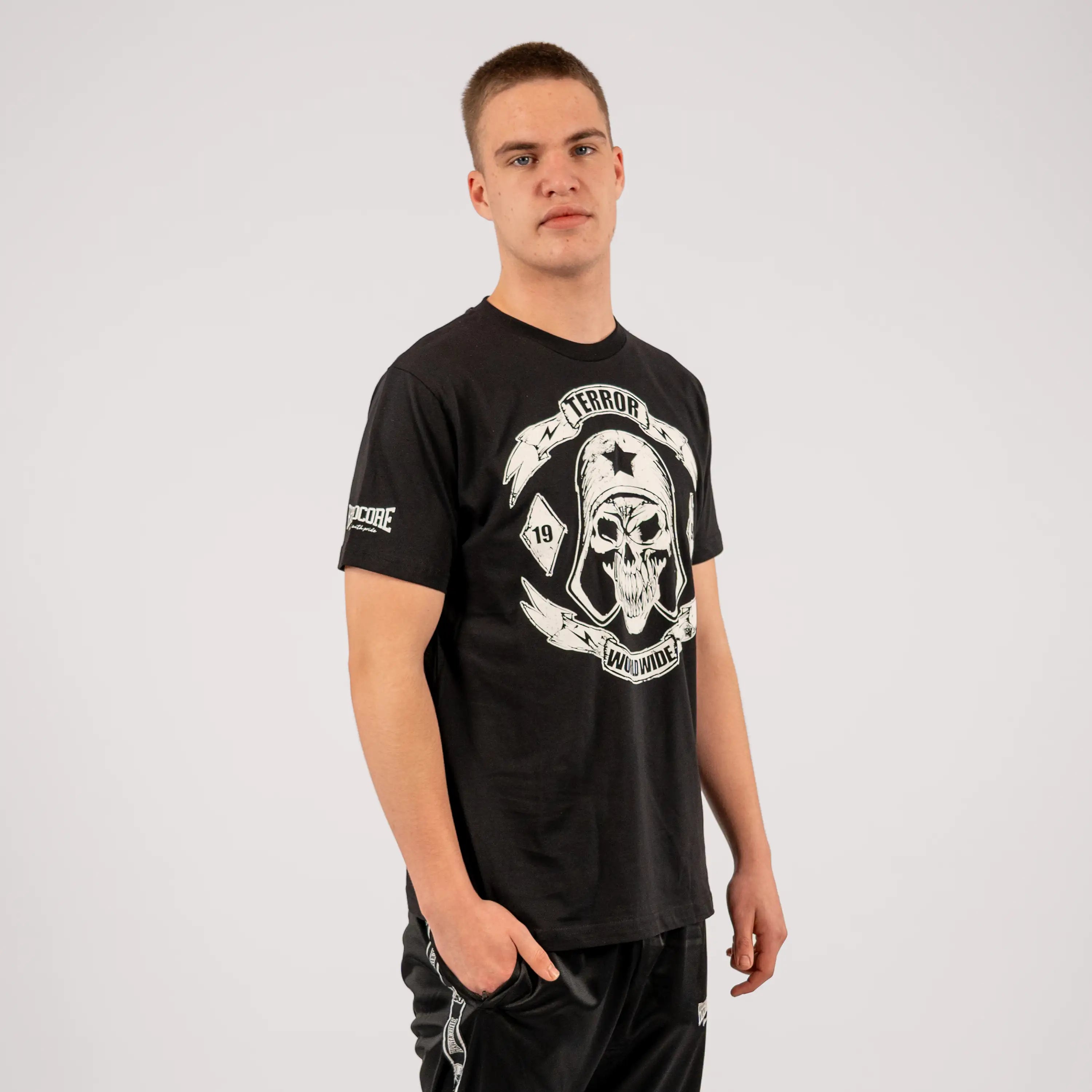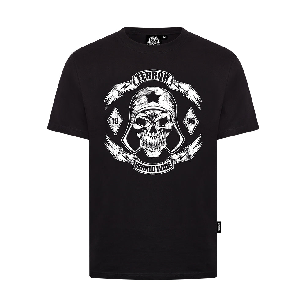 The Terror T-shirt Worldwide 1996 represents pure underground terror energy since day one. The bold front print features a skull with headphones, framed by banners carrying the Terror Worldwide text and the year 1996, a nod to the roots of the scene.