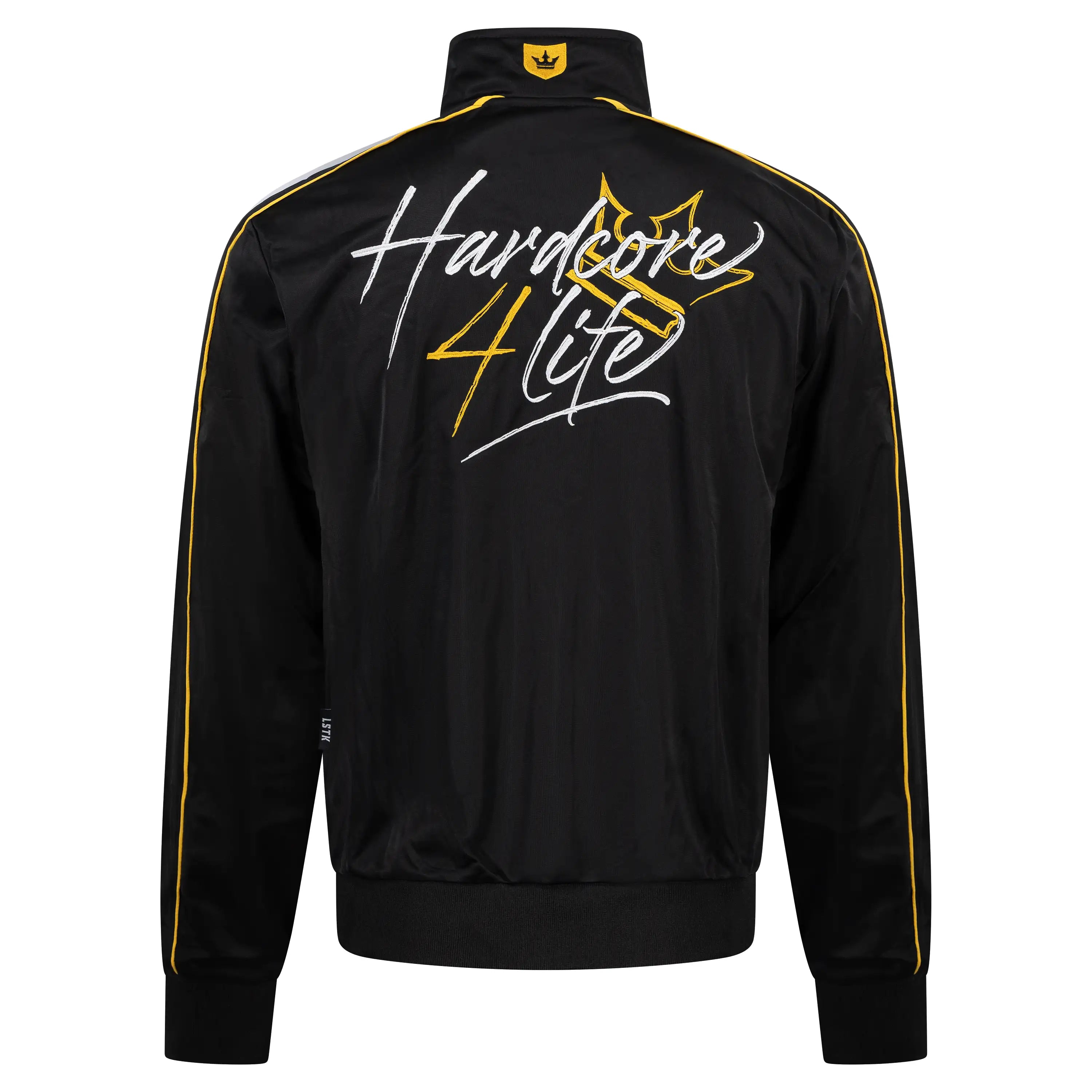 Consigue un look realmente hardcore con el chándal oficial de H4L. Negro con detalles amarillos y la famosa ilustración de Paul Elstak H4L en la chaqueta. Cómodo para fiestas, deporte o ropa informal.
